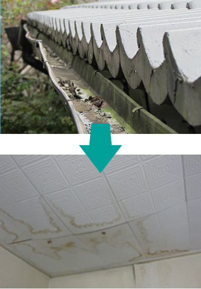 雨樋(雨どい)の最大の役目は「住宅の腐食を避けること」です。雨樋の故障をそのままにしておくと軒天が腐食し、いずれ内部にも雨水が侵入し天井まで侵食してしまうおそれがあります。普段はあまり気にかけることのない雨樋ですが、台風や雪により、雨樋が曲がったり、外れたりしていると、住宅への思わぬダメージにつながります。あなたの大切な住まいを守るためにも、ぜひ一度、雨樋の点検をおすすめします。